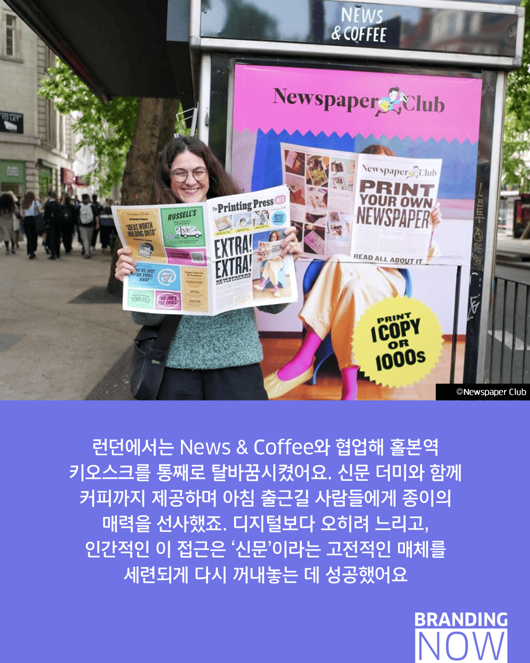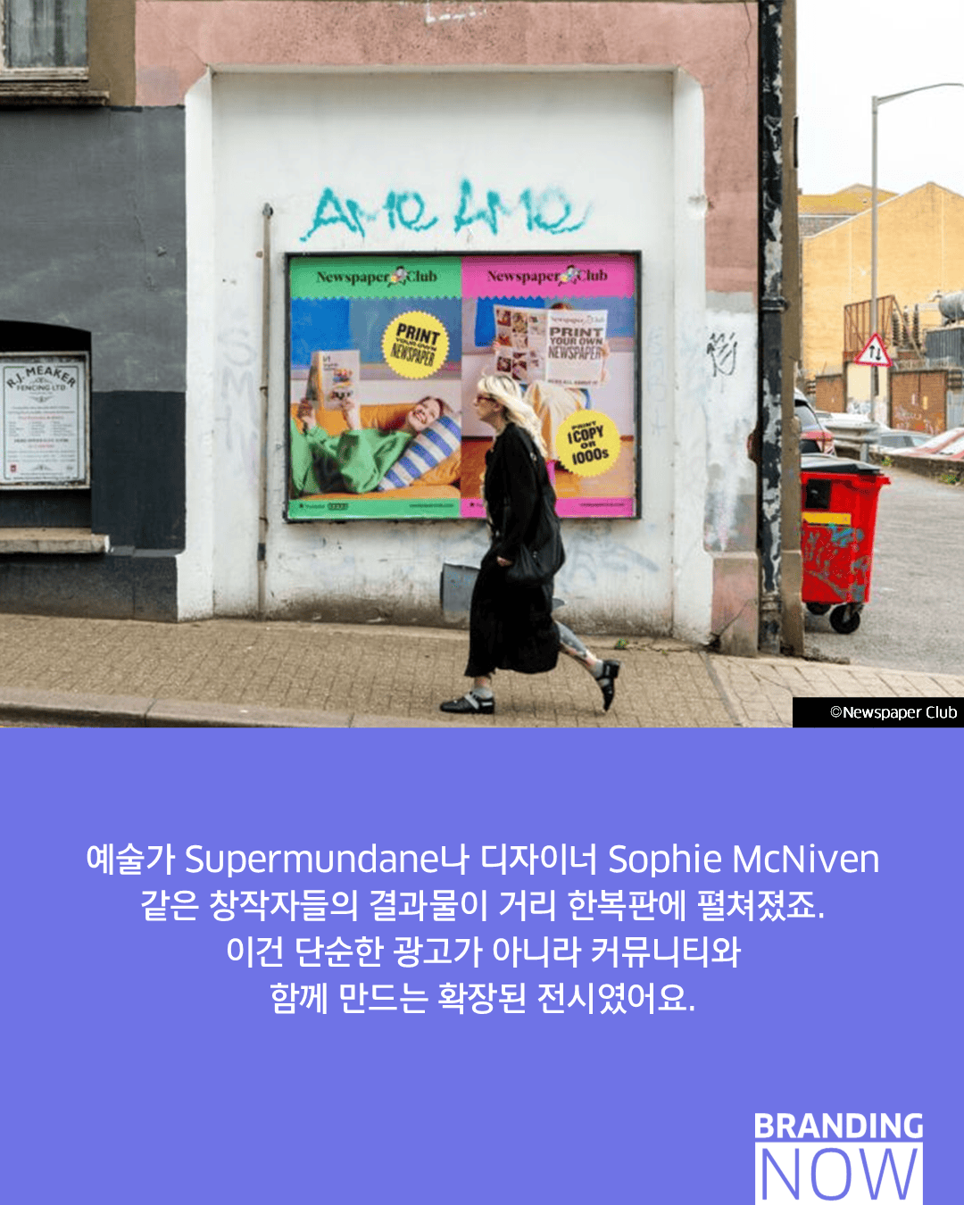특히 최근 첫 자사 발행 신문 ‘The Printing Press’를 선보이며, 신문을 단순한 뉴스 전달용이 아닌 창의적 확장 가능성을 보여주는 스토리텔링 도구로 부상시켰습니다. 예술가와 디자이너들의 결과물을 대형 옥외 광고판에 전시하며 커뮤니티와 함께 만드는 확장된 전시를 기획하기도 했죠.