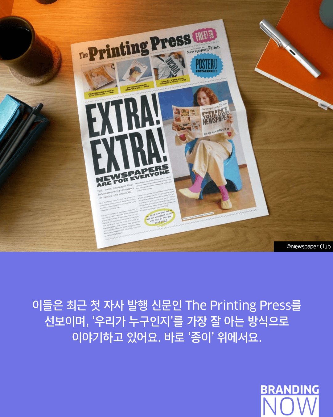 뉴스페이퍼 클럽 브랜드는 디지털 속도전에 휩쓸리지 않고, ‘종이’의 매력에 집중하며 차별화된 길을 택했습니다. 누구나 신문을 제작하고 인쇄할 수 있는 플랫폼을 통해, 오래된 매체를 새로운 영감의 도구로 재탄생시켰습니다.