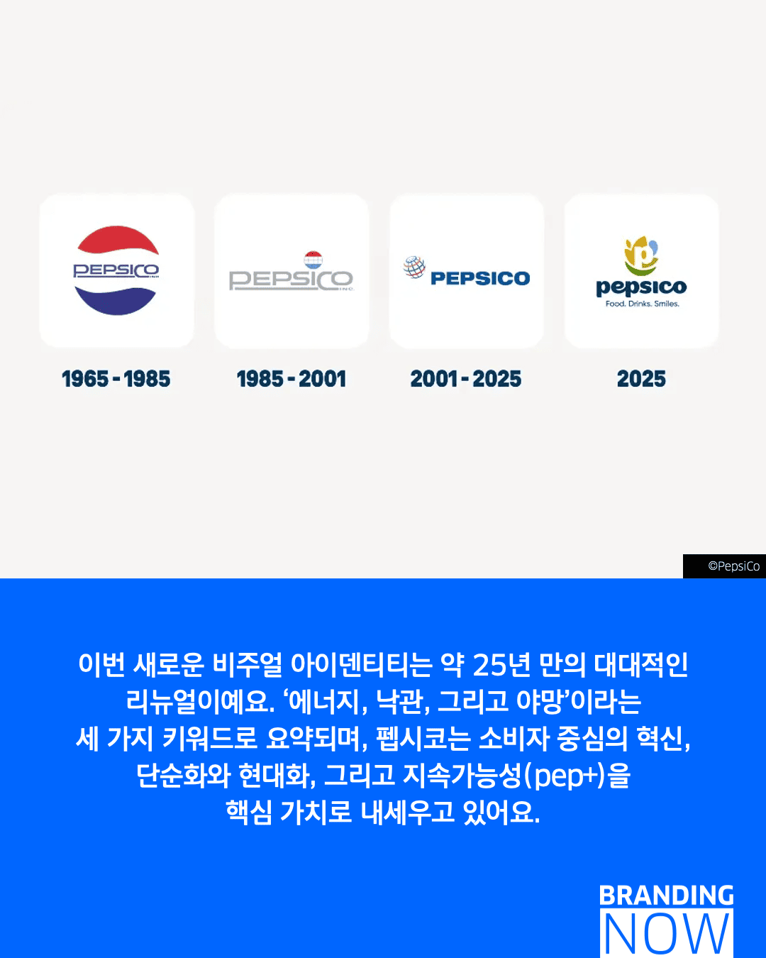 이번 펩시코 아이덴티티 리뉴얼은 거대 기업이 어떻게 외형적 변화를 넘어 기업 구조와 문화까지 혁신하며, 소비자 중심의 미래 비전을 제시하는지 보여주는 중요한 사례입니다.