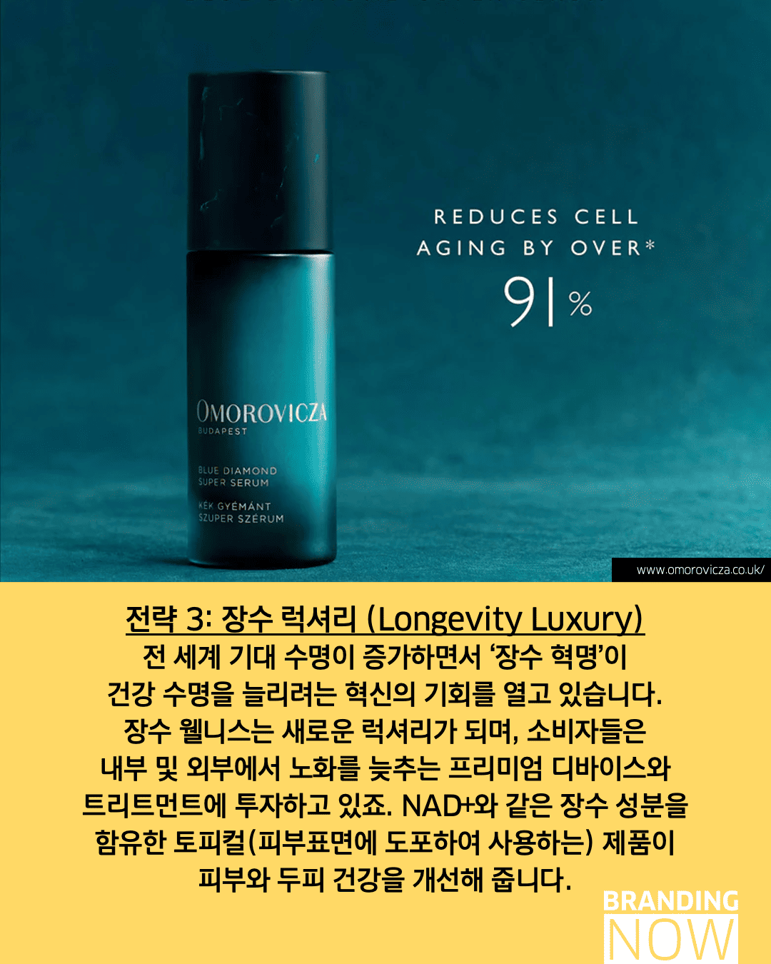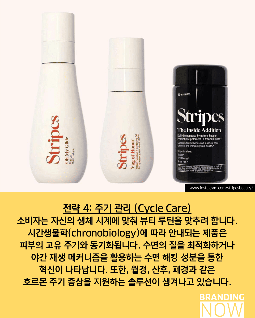브랜드들은 더 이상 표면적인 완벽함에 머무르지 않습니다. 소매틱 치유를 통한 심신 연결, 장수(Longevity)를 위한 이너 웰니스, 생체 주기에 맞춘 주기 관리(Cycle Care) 등 첨단 전략을 선보이고 있습니다.
