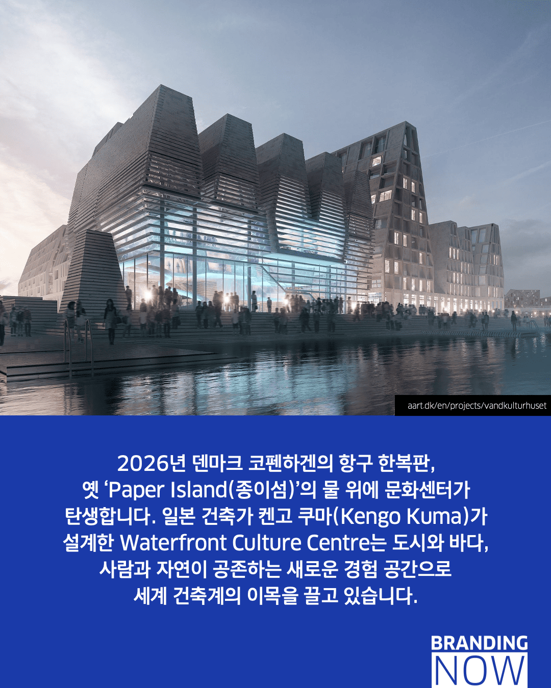 덴마크 코펜하겐의 옛 ‘Paper Island(종이섬)’ 부지에 일본 건축가 켄고 쿠마가 설계한 ‘Waterfront Culture Centre’가 새롭게 탄생합니다. 한때 산업용 창고였던 부지를 문화 예술 거점으로 재해석하는 성공적인 도시 재생 건축의 무대입니다.
