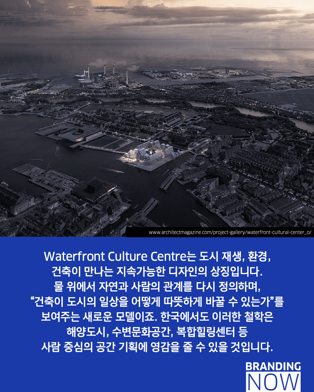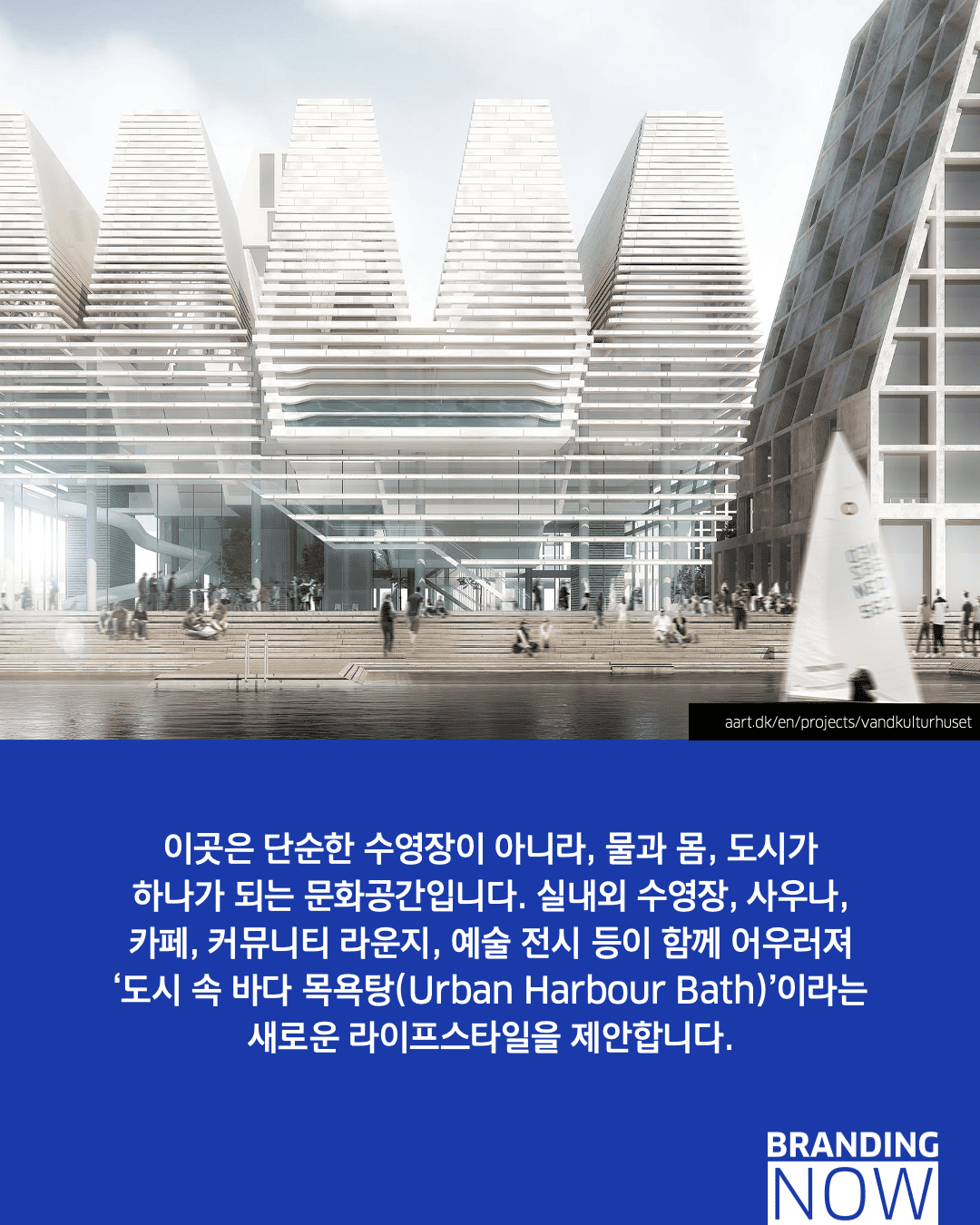 이곳은 수영장, 사우나, 카페 등이 어우러져 ‘도시 속 바다 목욕탕’이라는 덴마크식 웰빙을 공간으로 표현합니다. Waterfront Culture Centre는 도시 재생 건축이 어떻게 도시의 일상과 환경을 따뜻하게 바꿀 수 있는지 보여주는 새로운 모델입니다.