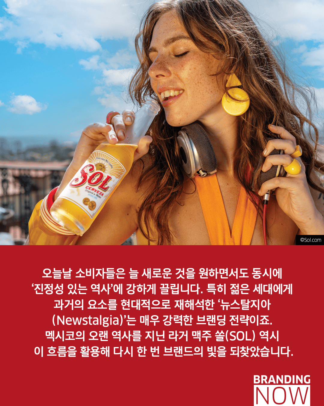 120년 역사의 멕시코 맥주 SOL이 과거의 유산을 현대적인 감각으로 재해석하며 화려하게 부활했습니다. 이는 젊은 세대의 ‘진정성 있는 역사’에 대한 니즈를 파고든 뉴스탈지아 리브랜딩의 성공 사례입니다.