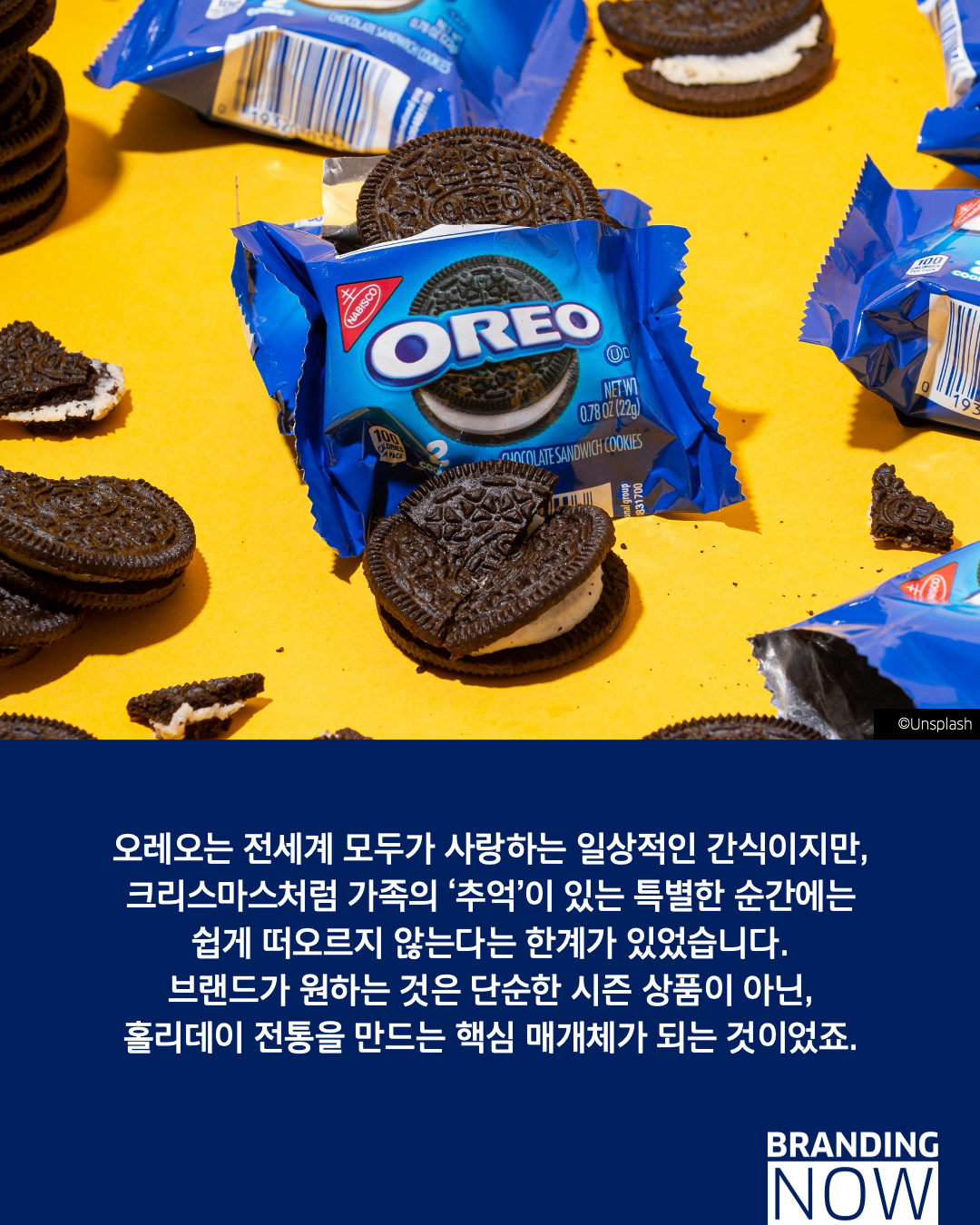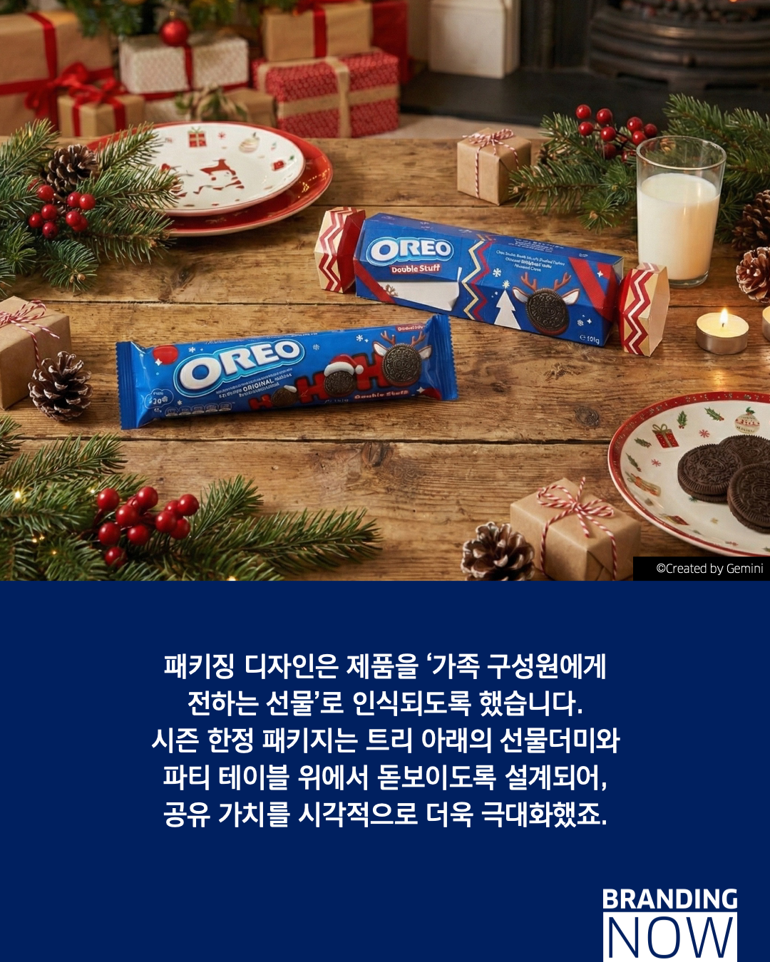 오레오(OREO)는 일상적인 간식이라는 인식을 넘어, 홀리데이 가족 전통 속에 스며들기 위해 특별한 시즈널 디자인 마케팅 전략을 선보였습니다.