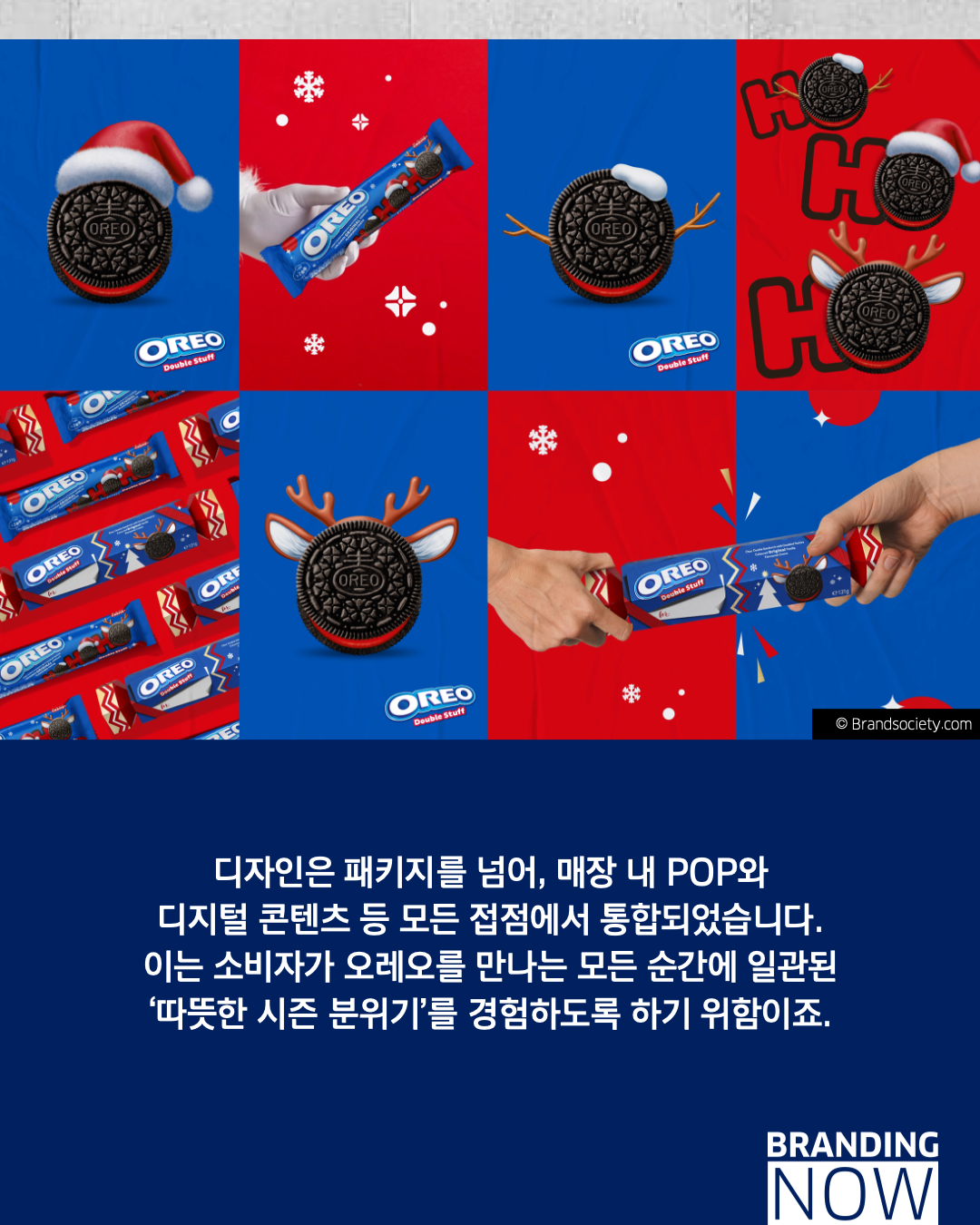 이번 시즈널 마케팅은 홀리데이 분위기를 모든 온/오프라인 접점에서 통합하여 일관된 경험을 제공합니다. 오레오는 디자인의 힘을 통해 제품을 단순한 간식에서 가족의 ‘추억‘을 엮어내는 매개체로 전환했습니다.