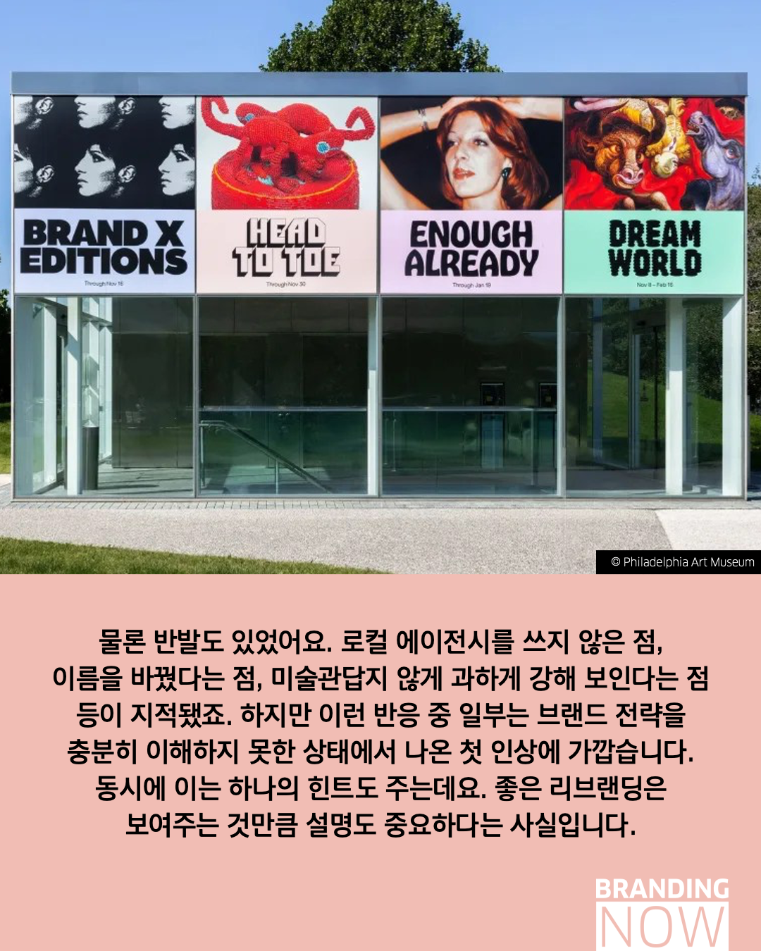 미술관과 박물관은 빠르게 변화하는 시대에 젊은 방문객을 끌어들이고 도시 문화의 일부로 존재해야 합니다. 필라델피아 미술관(Philadelphia Art Museum)은 이 질문에 명확한 답을 제시하며 과감한 리브랜딩을 단행했습니다.