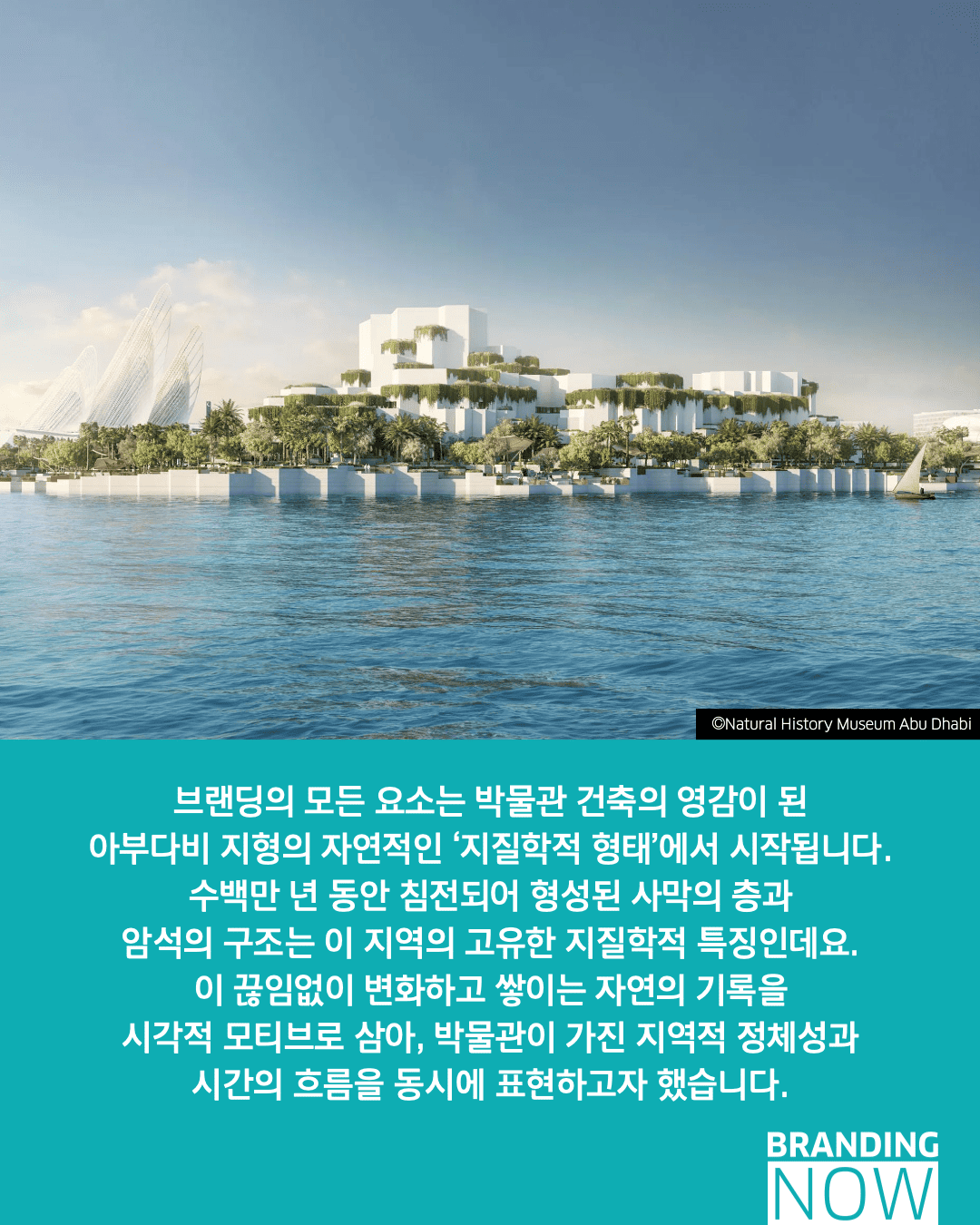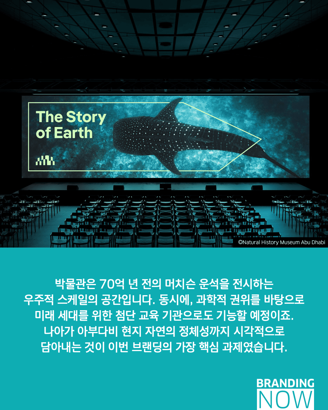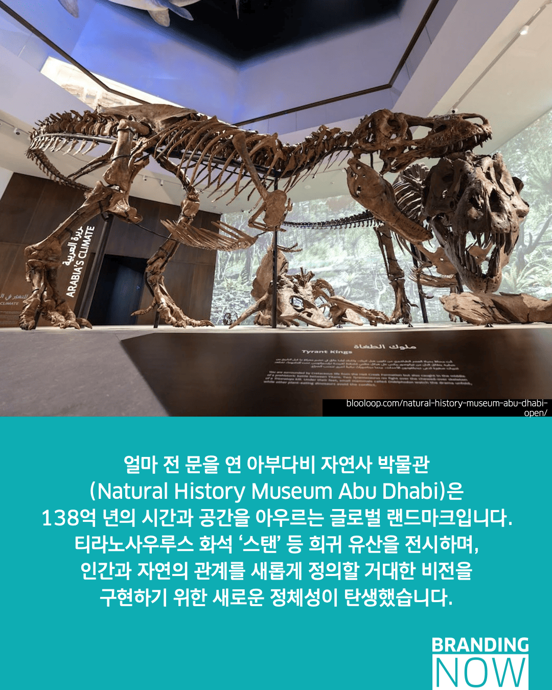 얼마 전 문을 연 아부다비 자연사 박물관은 138억 년의 시간과 공간을 아우르는 글로벌 랜드마크입니다. 인간과 자연의 관계를 새롭게 정의할 거대한 비전을 구현하기 위해 새로운 박물관 브랜딩이 탄생했습니다.