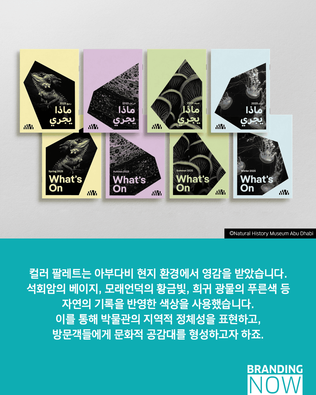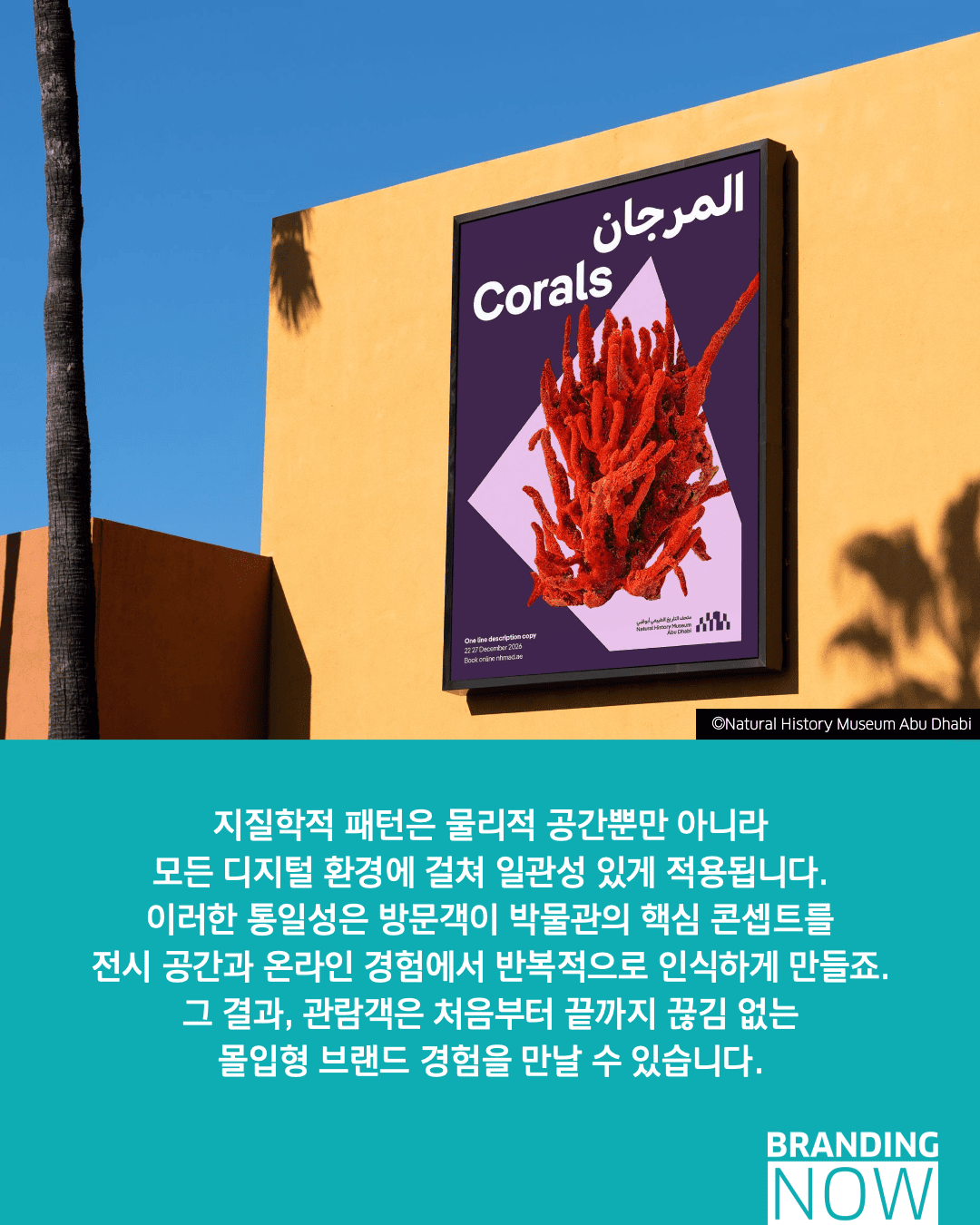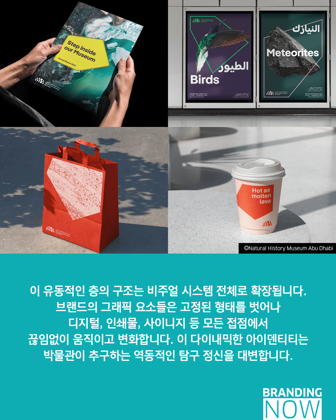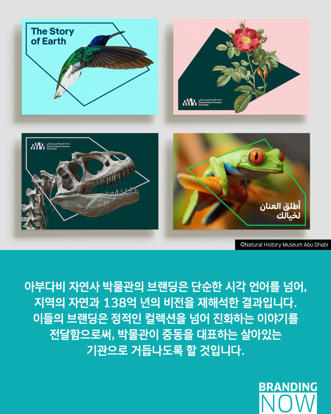 얼마 전 문을 연 아부다비 자연사 박물관은 138억 년의 시간과 공간을 아우르는 글로벌 랜드마크입니다. 인간과 자연의 관계를 새롭게 정의할 거대한 비전을 구현하기 위해 새로운 박물관 브랜딩이 탄생했습니다.