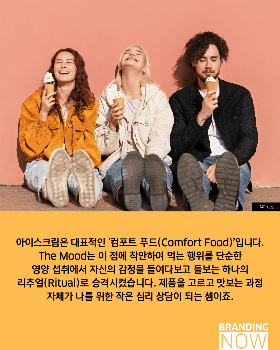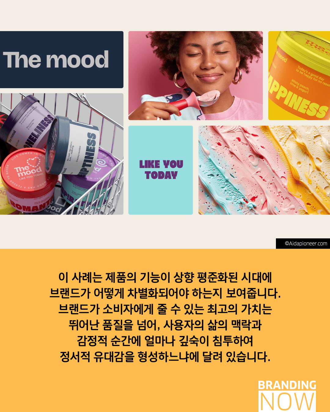 제품 품질이 평준화된 시대, 브랜드의 차별화는 소비자의 감정에 얼마나 깊이 침투하느냐에 달려 있습니다. 아이스크림 브랜드 The Mood는 미각을 넘어 내면을 치유하는 브랜드 감성 디자인의 정수를 보여줍니다.