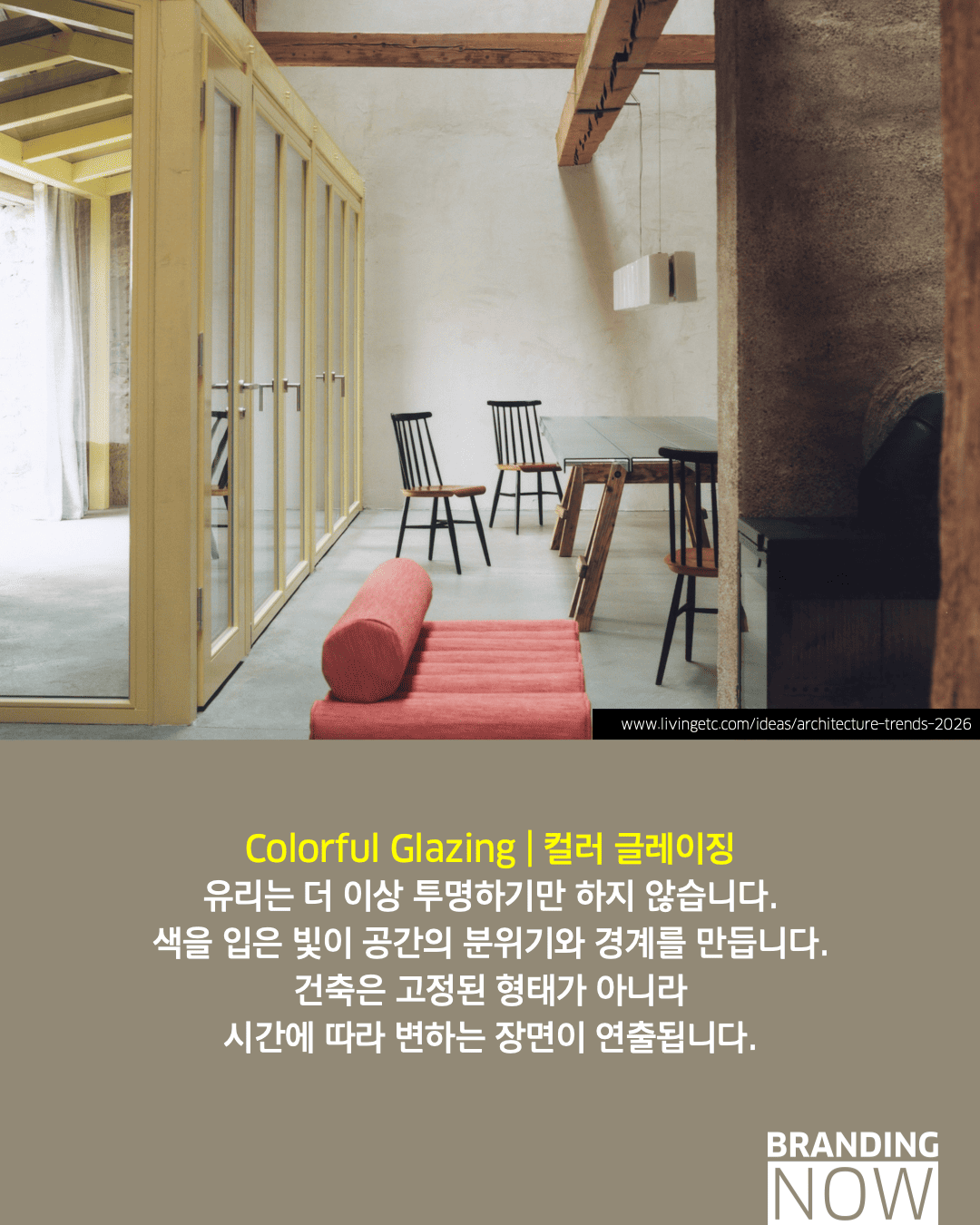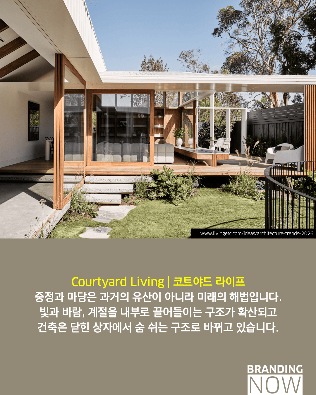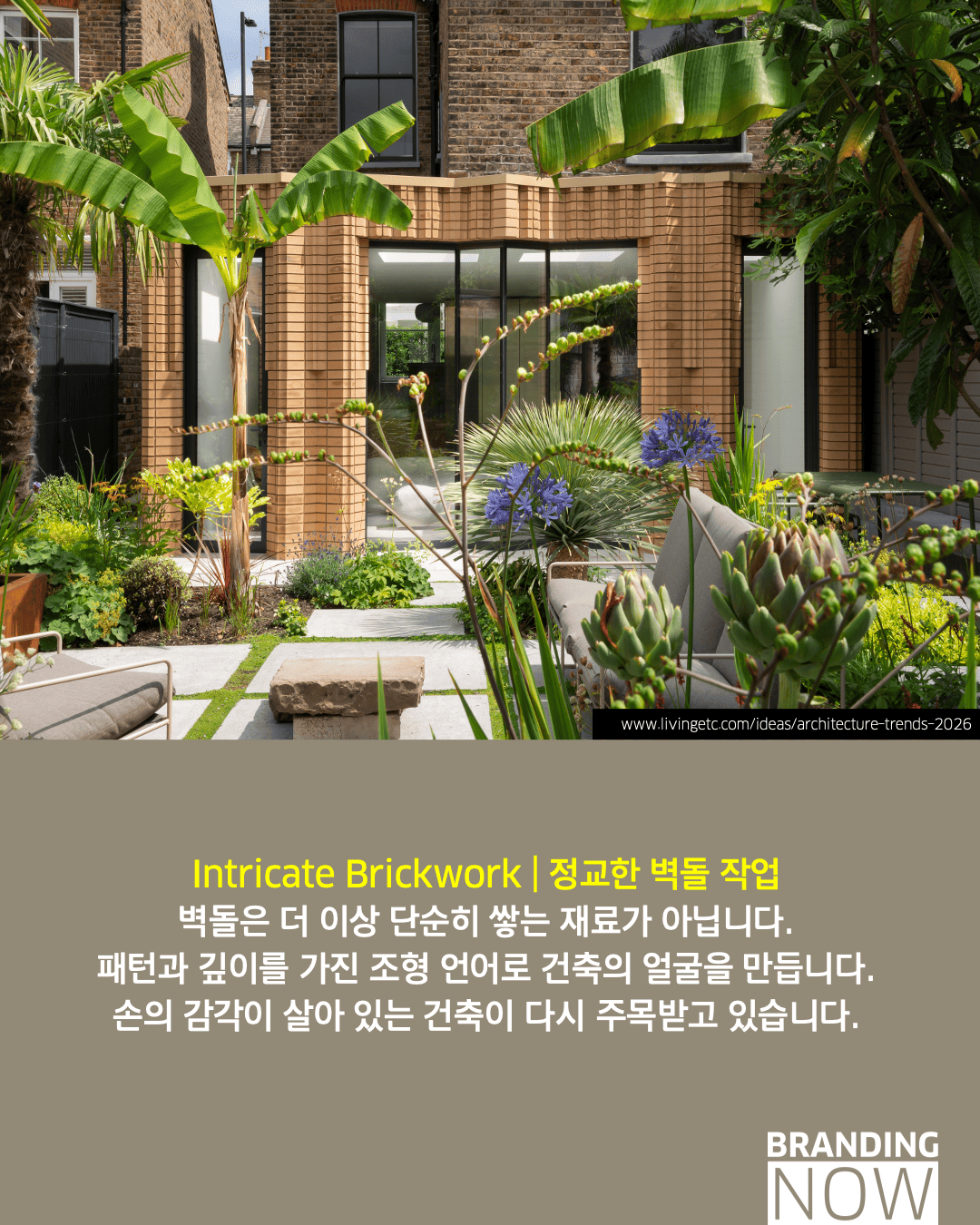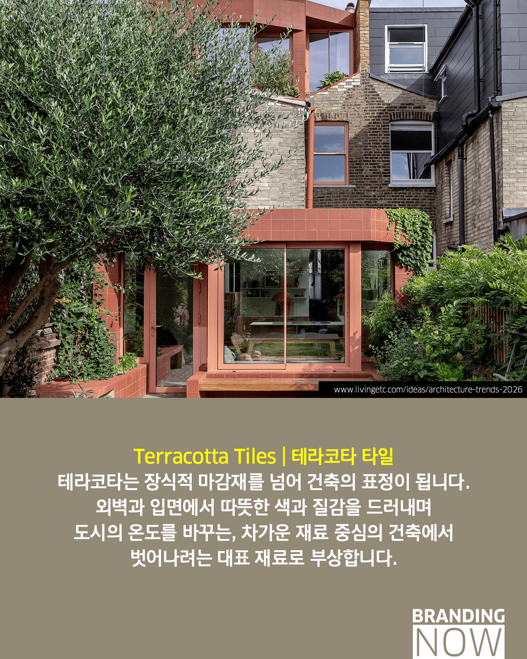디자인·건축 전문 매체 Livingetc는 미래 건축의 핵심을 ‘인간성 회복’으로 정의했습니다. 기술이 고도화될수록 자연의 흔적과 손의 감각을 강조하는 2026 건축 트렌드의 주요 흐름을 소개합니다.