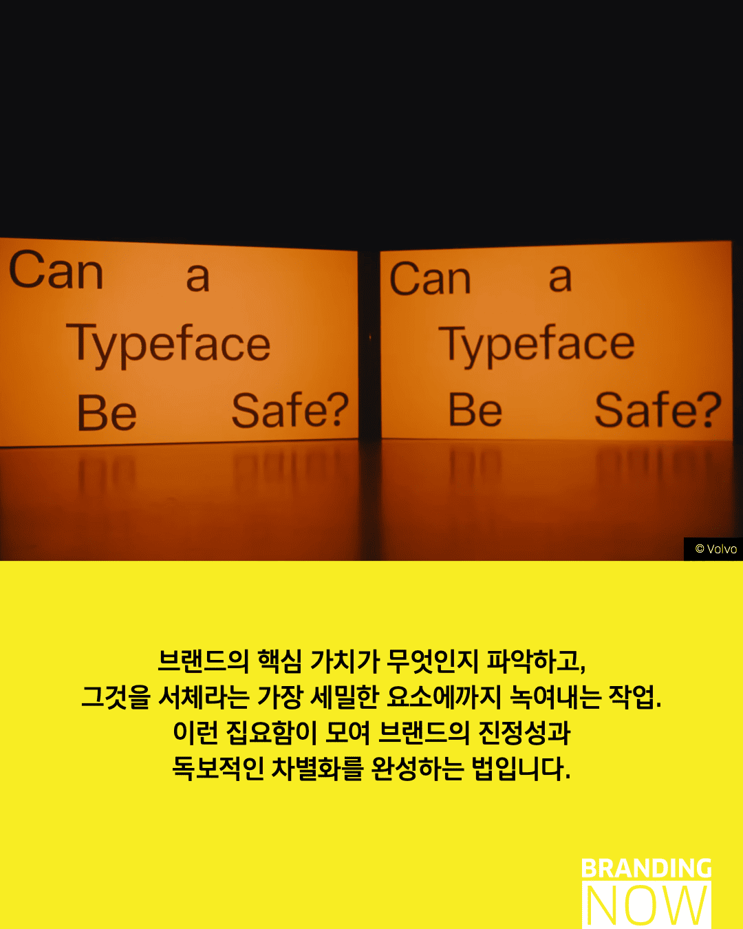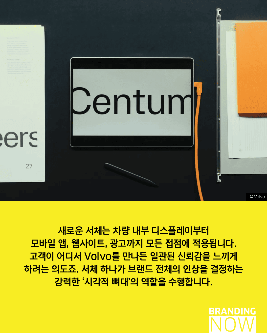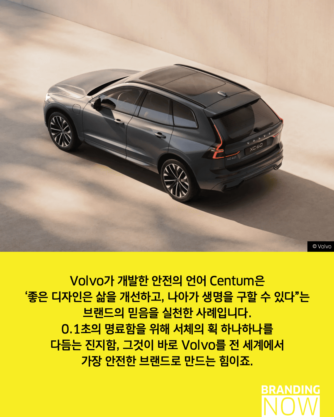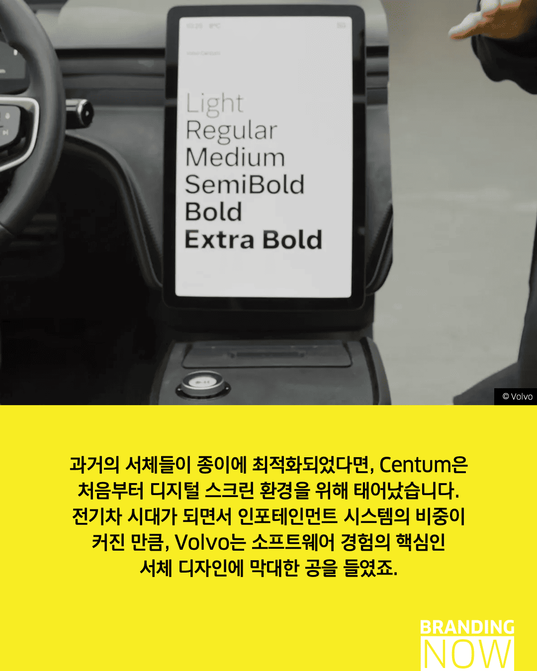 디자인은 단순히 보기 좋은 것을 넘어 생명을 구하는 도구가 될 수 있습니다. 볼보(Volvo)의 ‘볼보 센텀(Volvo Centum)’은 브랜드의 핵심 가치인 안전을 시각화한 안전을 위한 타이포그래피의 대표적 사례입니다.