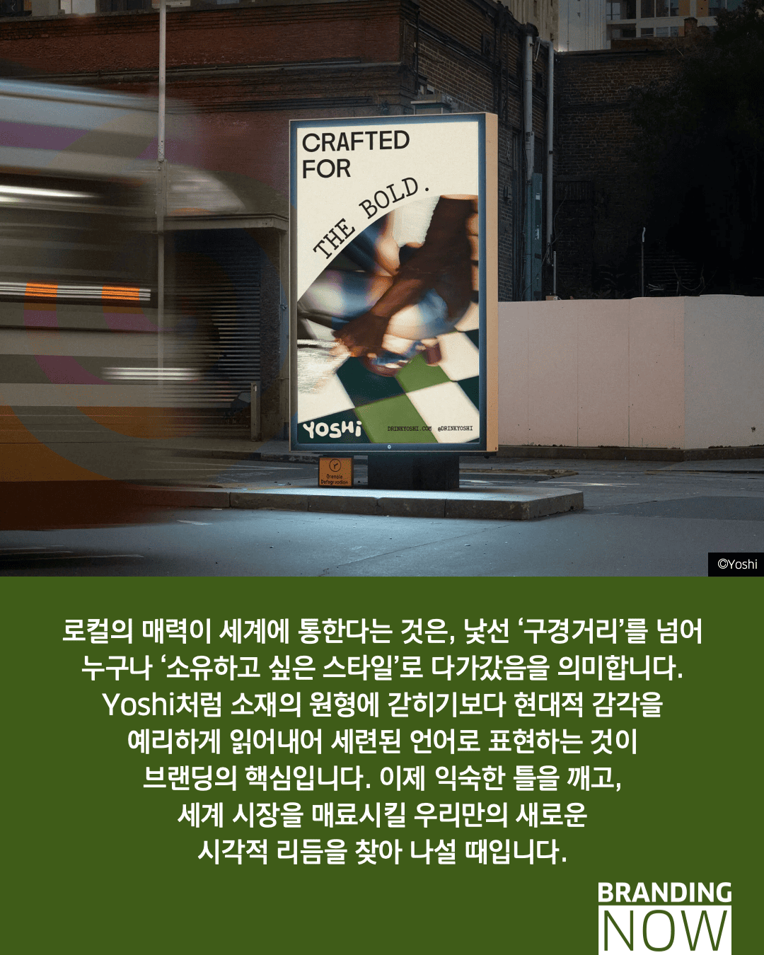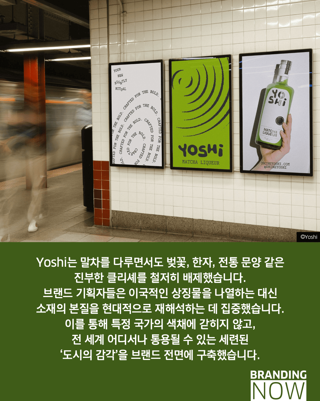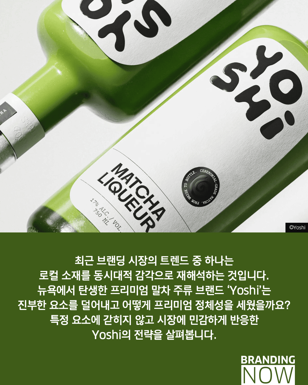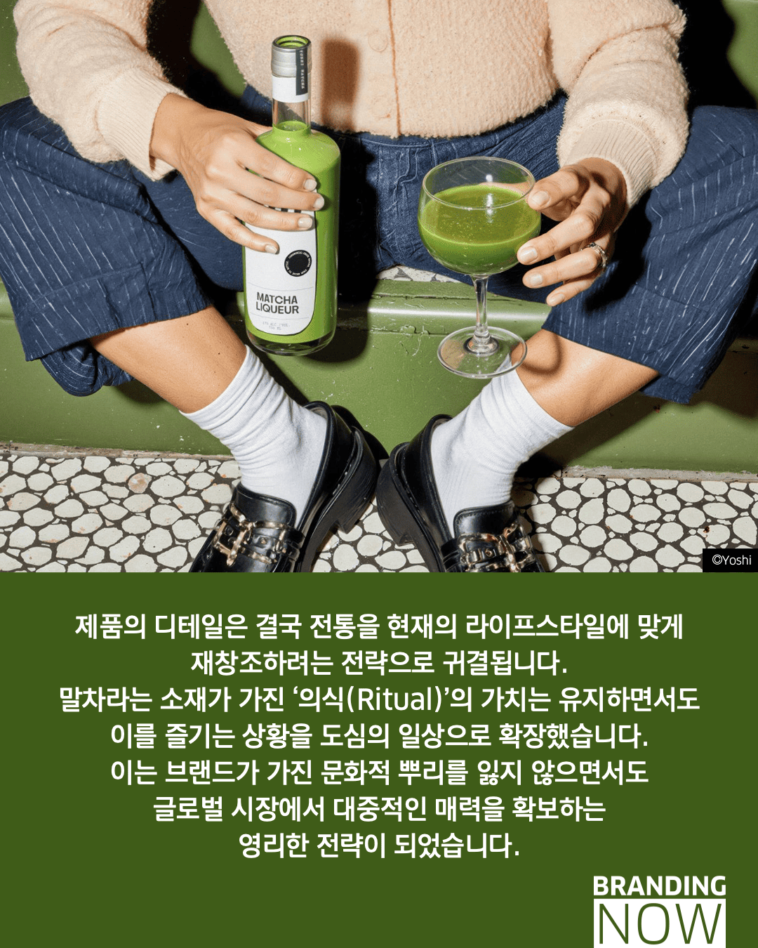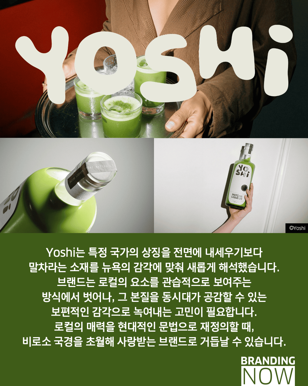 로컬 소재를 동시대적 감각으로 재해석하여 전 세계가 공감하는 가치를 창출하는 전략이 브랜딩의 핵심 동력이 되고 있습니다. 뉴욕에서 탄생한 말차 주류 브랜드 ‘Yoshi’는 일본의 전통 다도 문화를 뉴욕의 역동적인 밤문화와 결합해, 특정 국가의 색채를 넘어선 현대적인 로컬 마케팅을 선보입니다.