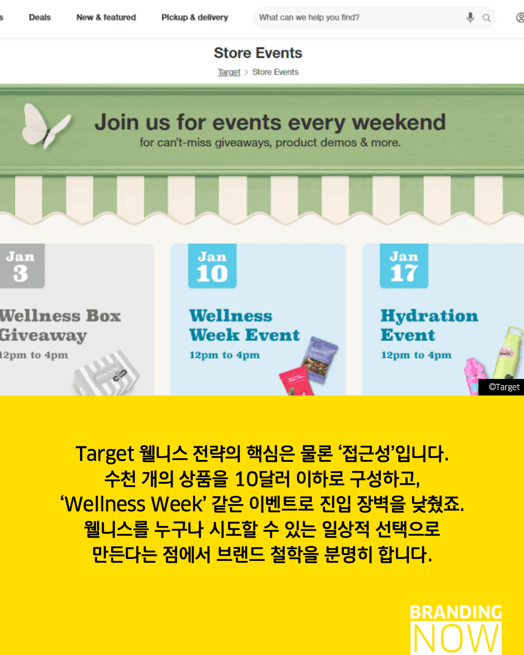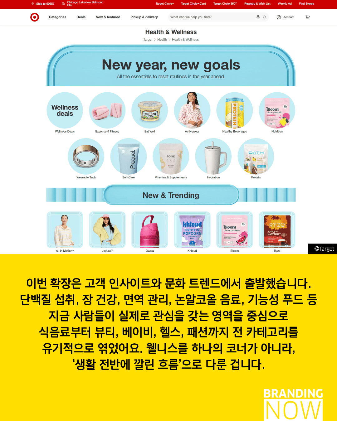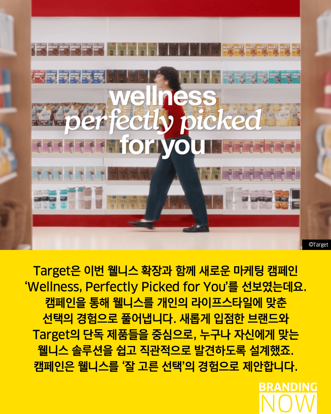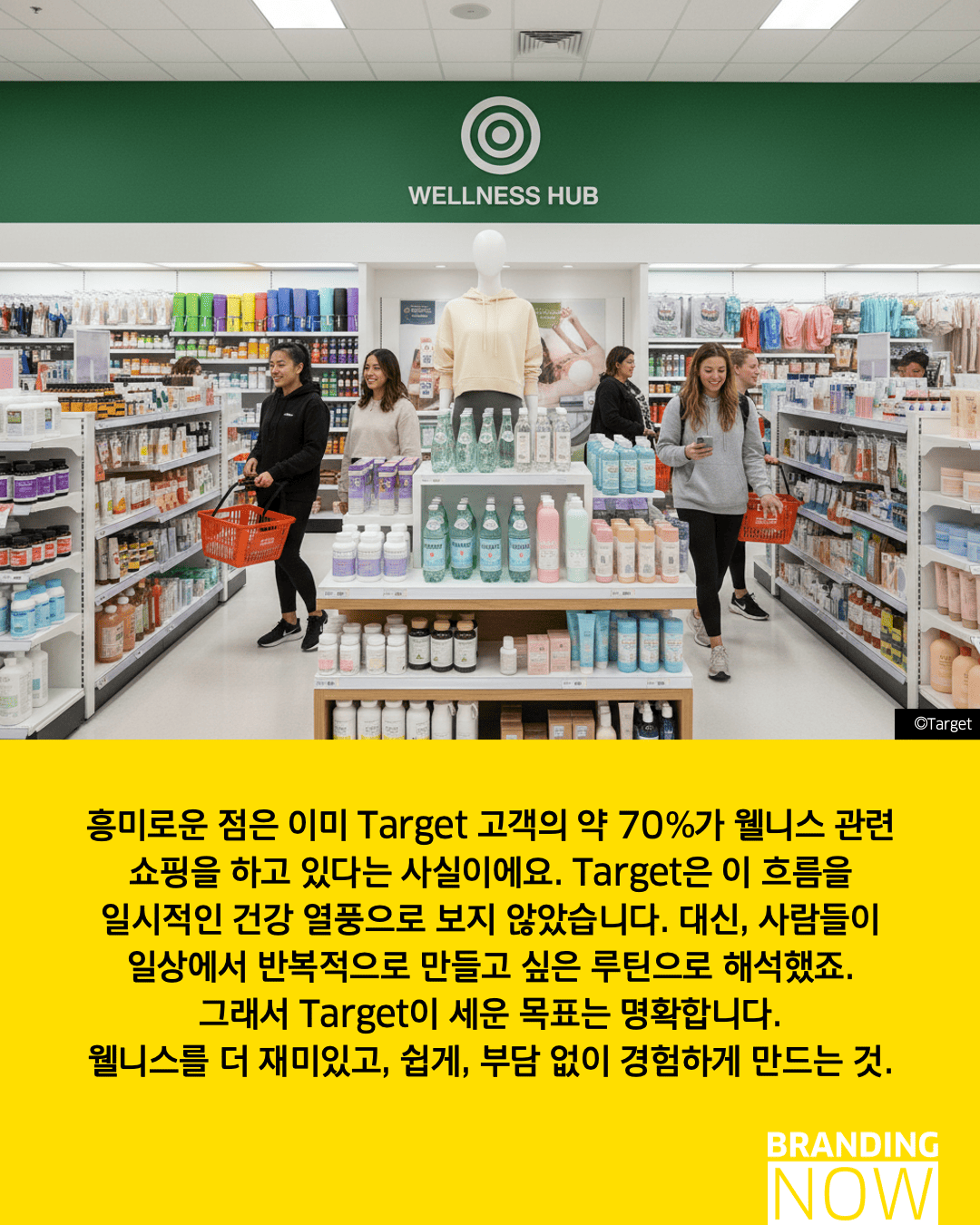 거창한 목표보다 일상에서 쉽고 재미있게 실천하는 웰니스를 제안하는 타겟의 전략은, 브랜드가 어떻게 대중의 생활 전반에 깊숙이 스며들 있는지를 보여줍니다.