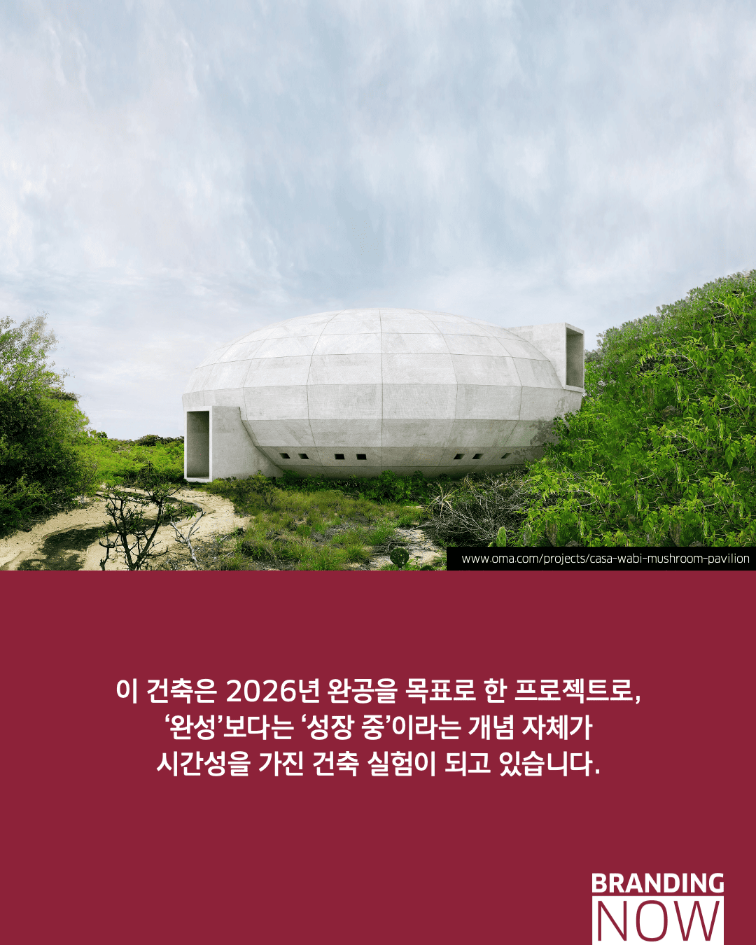 건축물이 자연의 일부로서 생명을 품고 성장하는 지속 가능한 건축의 새로운 가능성이 열리고 있습니다. 멕시코 오악사카주의 ‘머쉬룸 파빌리온’은 지역의 천연 재료를 활용해 버섯이 자생할 수 있는 최적의 환경을 조성하며, 인간과 자연이 공생하는 살아있는 유기체로서의 공간을 구현했습니다.