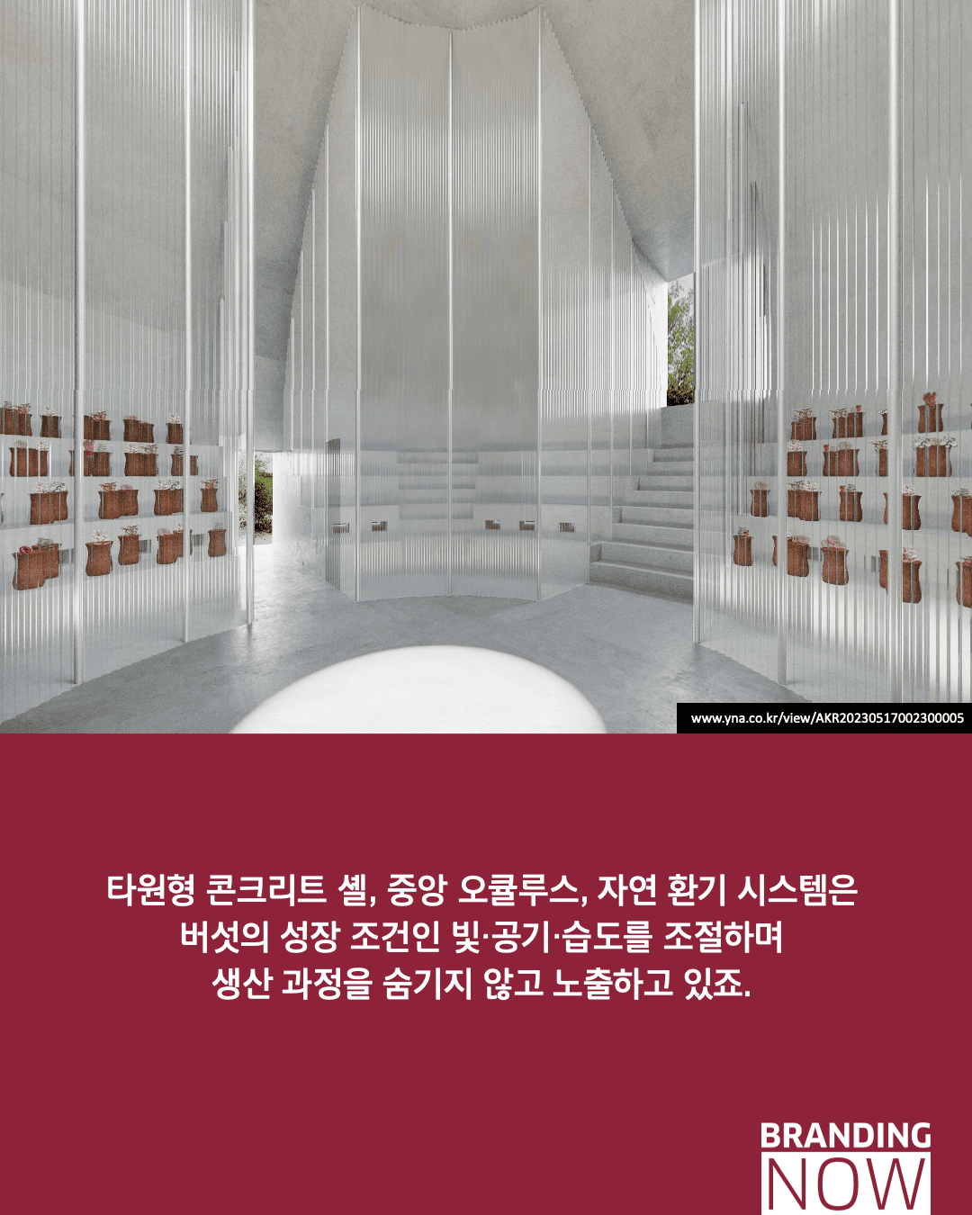 이 프로젝트는 시간이 흐름에 따라 건축물이 풍화되고 버섯이 자라나는 자연스러운 변화를 긍정하며 독보적인 생태적 미학을 보여줍니다. 지역 주민들에게 버섯 재배 교육과 소통의 장을 제공함으로써, 건축이 단순한 구조물을 넘어 공동체의 삶과 환경의 순환에 기여하는 혁신적인 모델을 제시합니다.