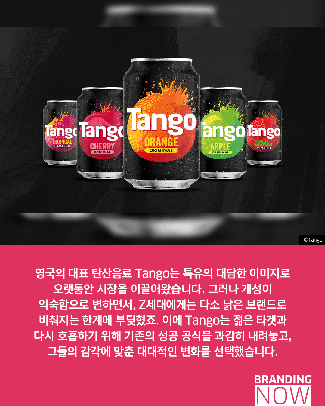 영국의 국민 음료 탱고(Tango)가 오랜 시간 유지해온 정돈된 이미지를 탈피하고, 완벽함 대신 ‘혼돈’을 선택하는 파격적인 리브랜딩을 단행했습니다. 이들은 대중적인 세련미보다 가장 나다운 모습을 드러내는 ‘계산된 대담함’을 통해, 자칫 낡게 느껴질 수 있었던 브랜드 정체성을 Z세대의 감각에 맞춰 성공적으로 재구축했습니다.