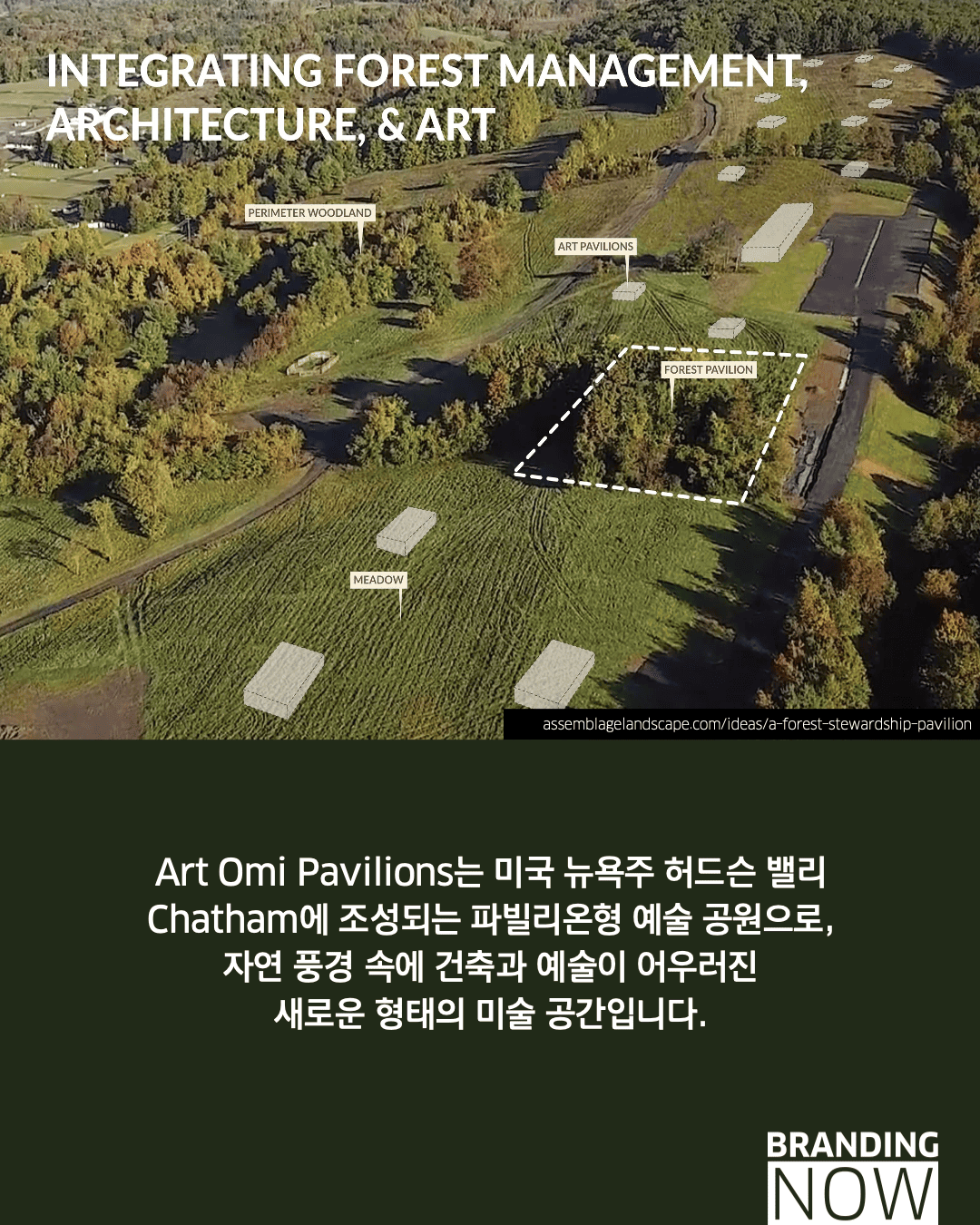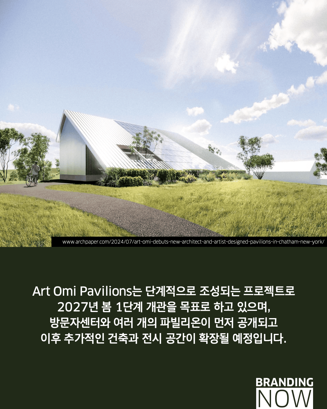 뉴욕 허드슨 밸리의 광활한 대지 위에 세워지는 아트 오미 파빌리온(Art Omi Pavilions)은 ‘미술관은 건물이어야 한다’는 고정관념을 과감히 뒤집습니다. 이들은 자연 지형을 최대한 보존하면서 예술과 건축을 풍경 속에 흩뿌려 놓은 랜드스케이프 건축을 통해, 관람객이 숲과 초원을 거닐며 예술가의 세계를 직접 탐험하도록 설계했습니다.