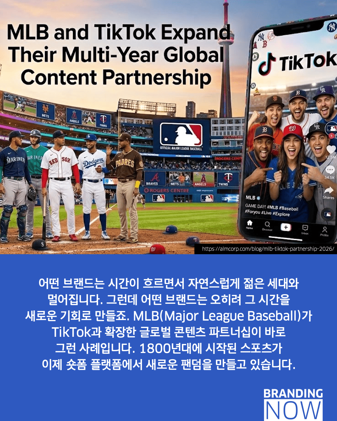 전 세계에서 가장 보수적인 스포츠 중 하나로 꼽히던 야구가 틱톡이라는 자유로운 무대를 만나 화려한 디지털 부활을 알리고 있습니다. MLB와 틱톡의 확장된 파트너십은 단순히 경기 영상을 공유하는 차원을 넘어, 라이브 중계와 숏폼 콘텐츠가 유기적으로 결합된 새로운 미디어 소비 형태인 ‘세컨드 스크린’ 문화를 정확히 공략한 결과입니다.