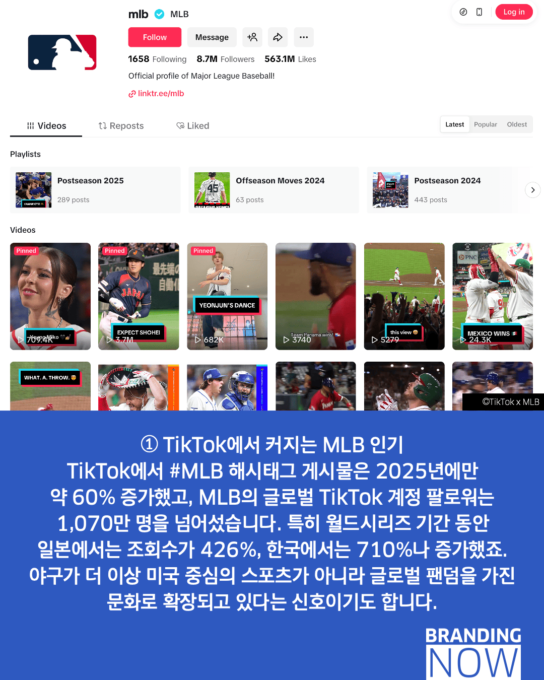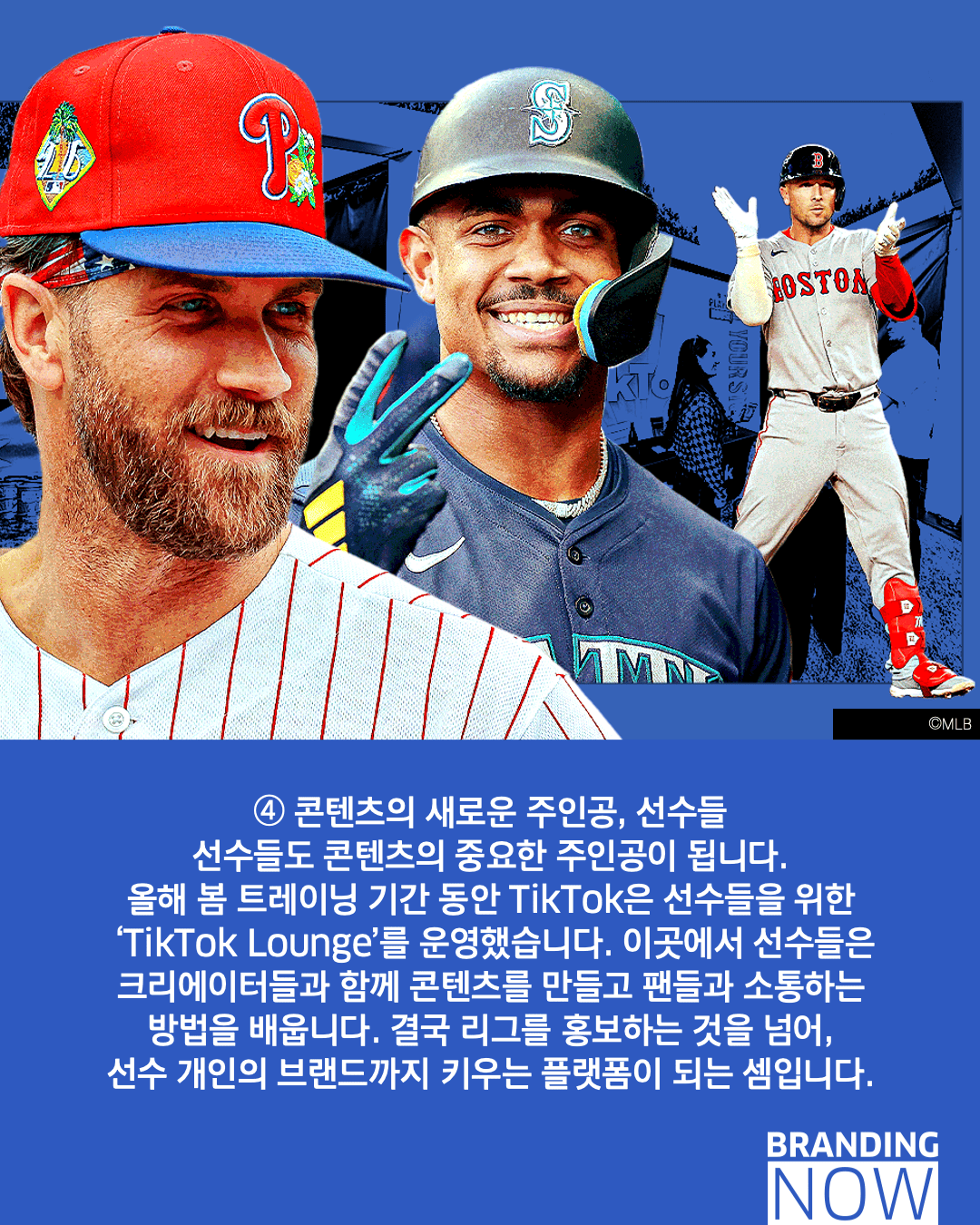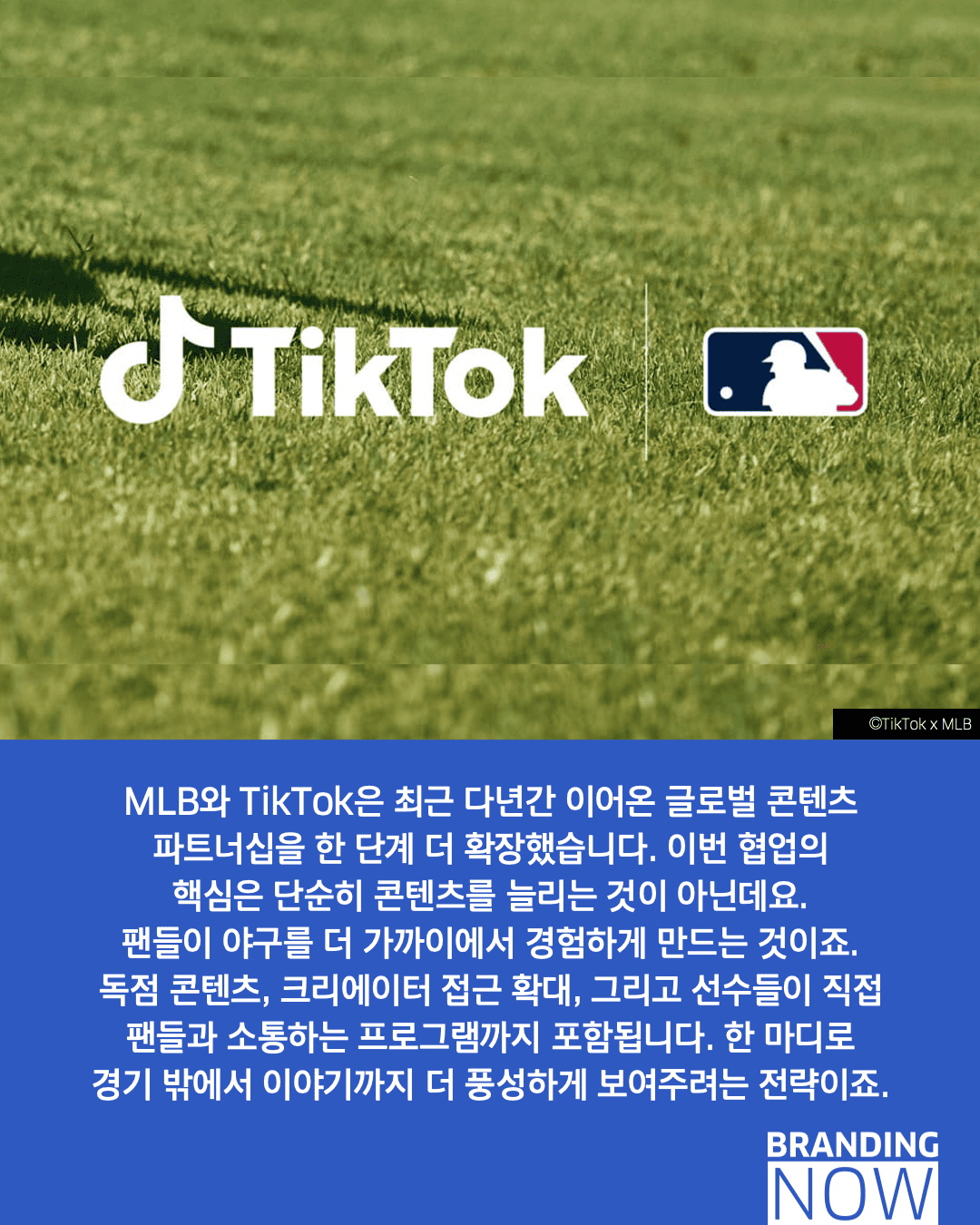 이들은 틱톡 내 ‘MLB Hub’를 통해 독점 콘텐츠와 비하인드 스토리를 제공하며 팬들이 야구라는 스포츠를 더 가깝고 풍성하게 경험하도록 설계했습니다. 특히 선수들이 직접 크리에이터가 되어 일상을 공유하고 팬들과 소통하는 방식은, 야구를 경기 결과 중심의 스포츠에서 매력적인 서사가 살아 숨 쉬는 하나의 거대한 문화 콘텐츠로 격상시켰습니다.