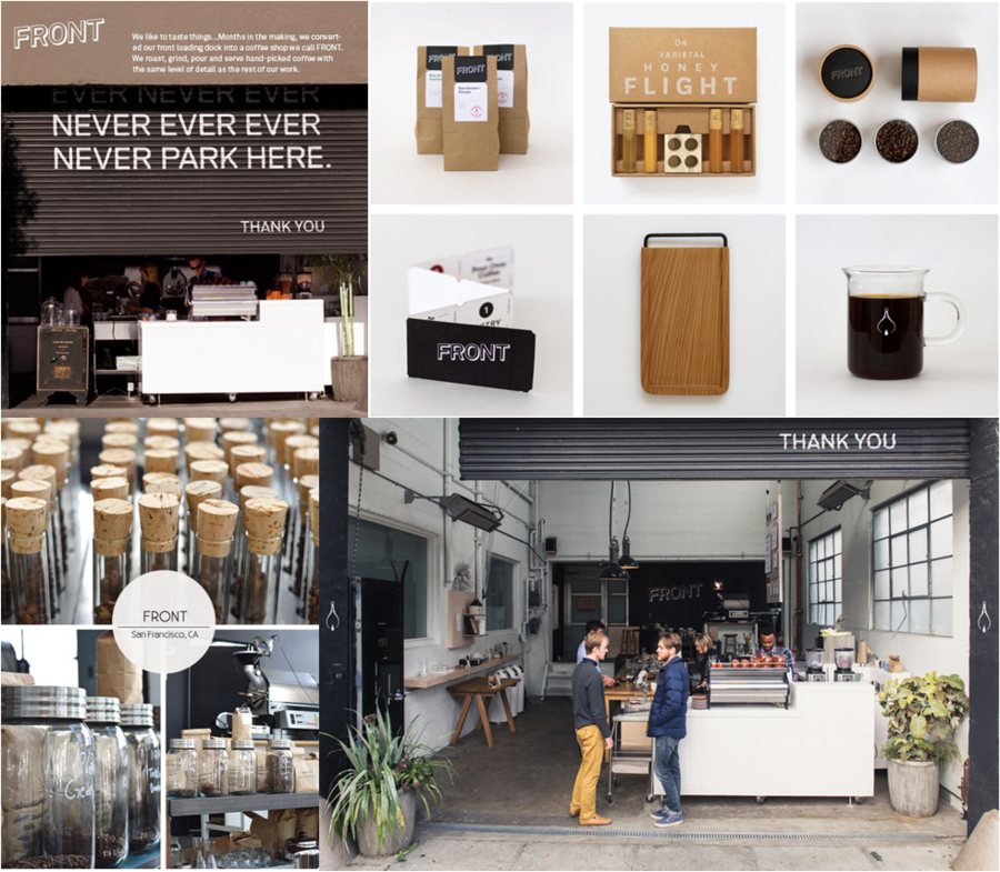 디자이너와 아티스트들의 집결지 Café Front. 차고지를 연상케 하는 자연스럽고 편안한 분위기에 조금은 세련되고 유니크한 커피와 제품을 판매하는 곳. 디자이너와 아티스트들이 커피와 차를 마시며 문화를 향유하는 샌프란시스코의 대표적인 hip place 이다.